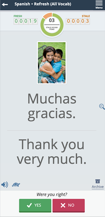 In contrast, the Transparent Language mobile app provides a broader learning experience that can be used independently or in conjunction with Transparent Language Online. In addition, it provides true progress tracking, and allows muted use. Because of this, Transparent Language's mobile and tablet learning experience is both more in-depth and useful in terms of the actual learning of new content, delivering a richer mobile experience.