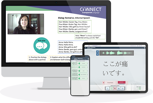 Transparent Connect™ blends technology and a virtual tutor to target your employees' language needs flexibly and reliably. All programs include: