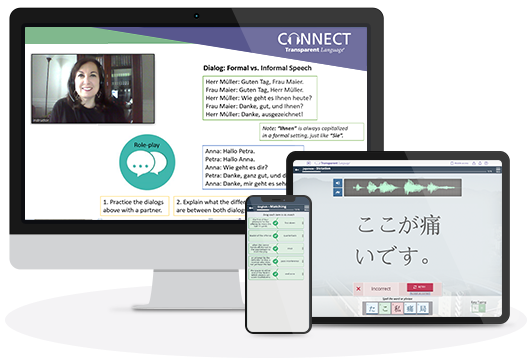 Students build vocab and reading and listening skills with adaptive lessons in the CL-150 Platform. Then come to our virtual language classroom ready to put it into action.